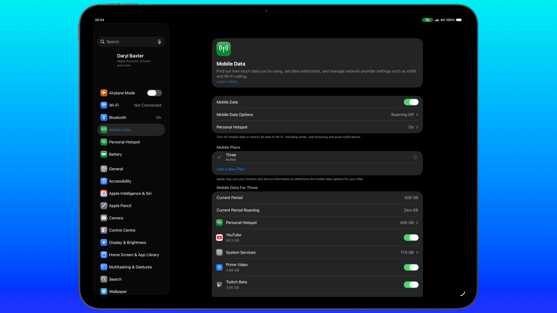 For £20 from SMARTY, which offered a SIM with unlimited data, I was able to stream, download, and do everything else via my iPad. The coverage impressed me - I was staying in a park in a village called Howarth in July, and I was getting full bars of 5G service. Of course, experiences may vary, but a lot of work was done in that van thanks to the iPad.